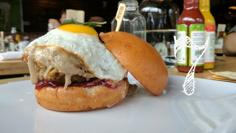 A thick turkey patty, cranberry relish, cheese curds, Kennebec fries, turkey gravy, duck egg and fried sage leaves. Get out of town! At $16 a la carte it wasn’t an economical choice, but it was an easy one.