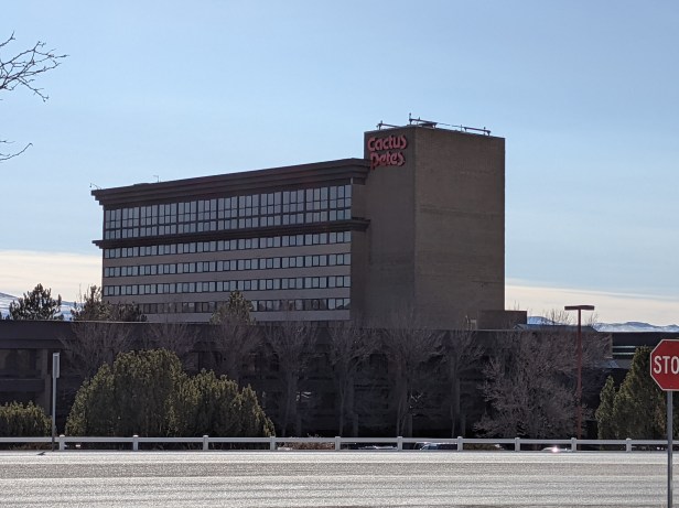 This was a long stretch of driving and we knew that there wouldn’t be a lot of stops along the way. We had enough gas to get us to the Nevada border, so we made Jackpot, NV our first stop. It’s not a big town, but there are a few casinos. The gas station bathrooms were all closed because it was too early in the day, so we hauled the kids into Cactus Pete’s casino to use their restrooms. From there we drove another several hours down to Ely, NV to have lunch at Rolberto’s Mexican Food. Blog post for that meal is included here. Another funny story, I was interviewed over Zoom in the parking lot of that restaurant by a Seattle news station about a serial crow killer in my neighborhood. Strange times.