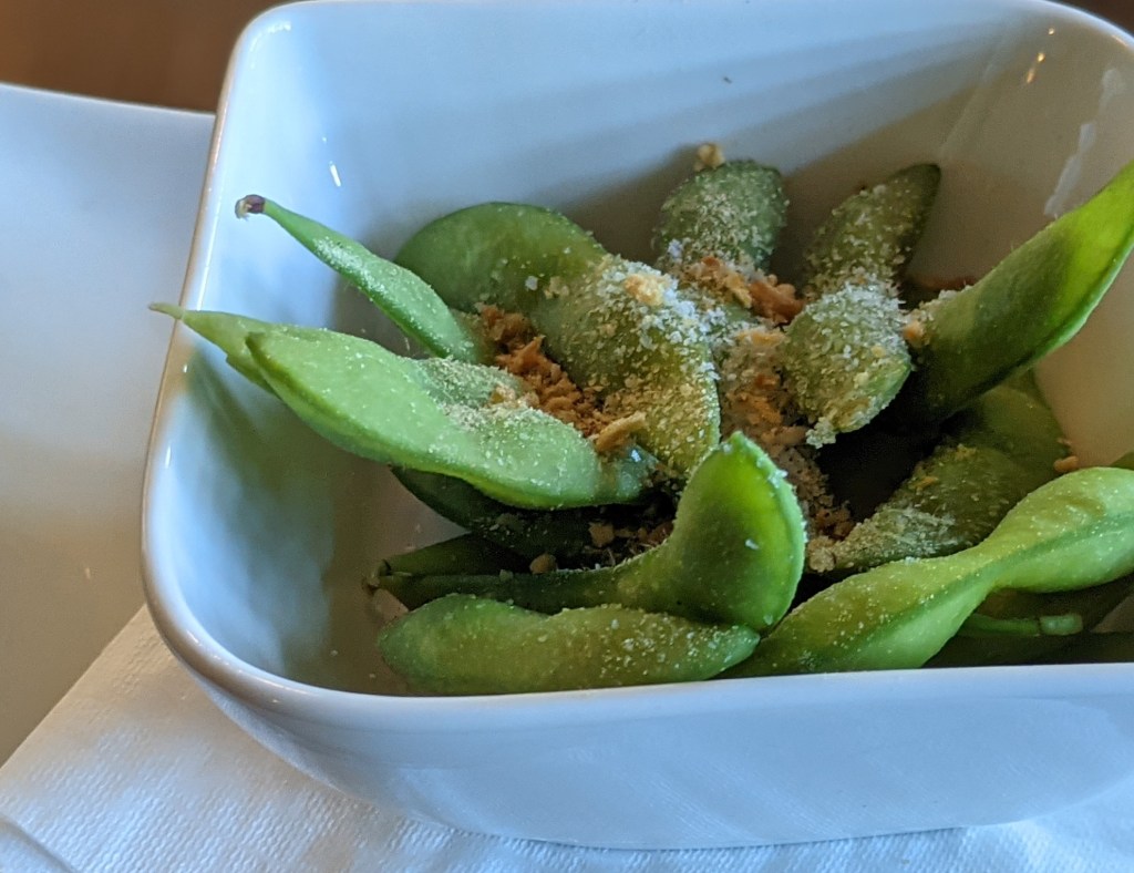 The Mojito cut through the richness of the fries and helped me appreciate the next bites. I couldn’t taste much of the lychee (it’s not a strong flavor), but the bright lime and herbaceous mint were exactly what I needed. Really refreshing. I also had a small plate of edamame to snack on, and a cute little order of blueberry flan to finish it off. What a perfect night.