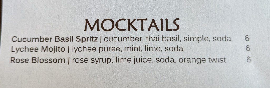 The overall flavor profile was smoky, and spicy, and salty, and rich. The pork shoulder was cooked low and slow enough that it was melt in your mouth tender but not soggy like other kalua pork that I’ve had. The combination of the runny egg and the pork reminded me so much of Hawai’i…I had a moment of unbridled nostalgia while sitting by myself in the restaurant. I paused for a bit, enjoyed being alone, took in the Bon Iver playing over the the speakers, and sipped on a virgin Lychee Mojito.