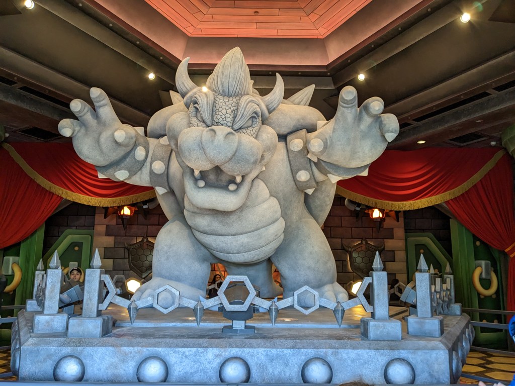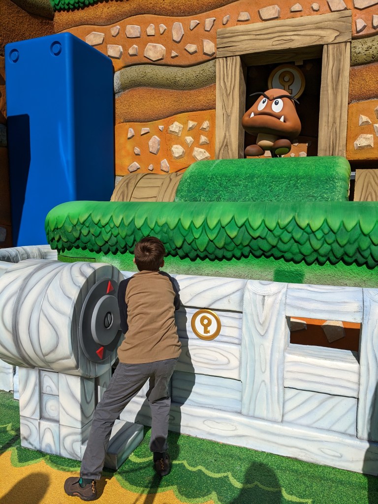 The footprint of Super Nintendo World is relatively small, and I was worried that it would feel claustrophobic. Maybe due to the small crowd size on the day I visited, this was not the case. The attractions are generally stationed along the perimeter of the space, and there was room to navigate around without people crowding into you. There were some awkward spots where a line formed waiting to play a mini game and it wasn’t obvious what direction the queue was intended to take, but someone came over and shifted us away from a different attraction’s entrance.