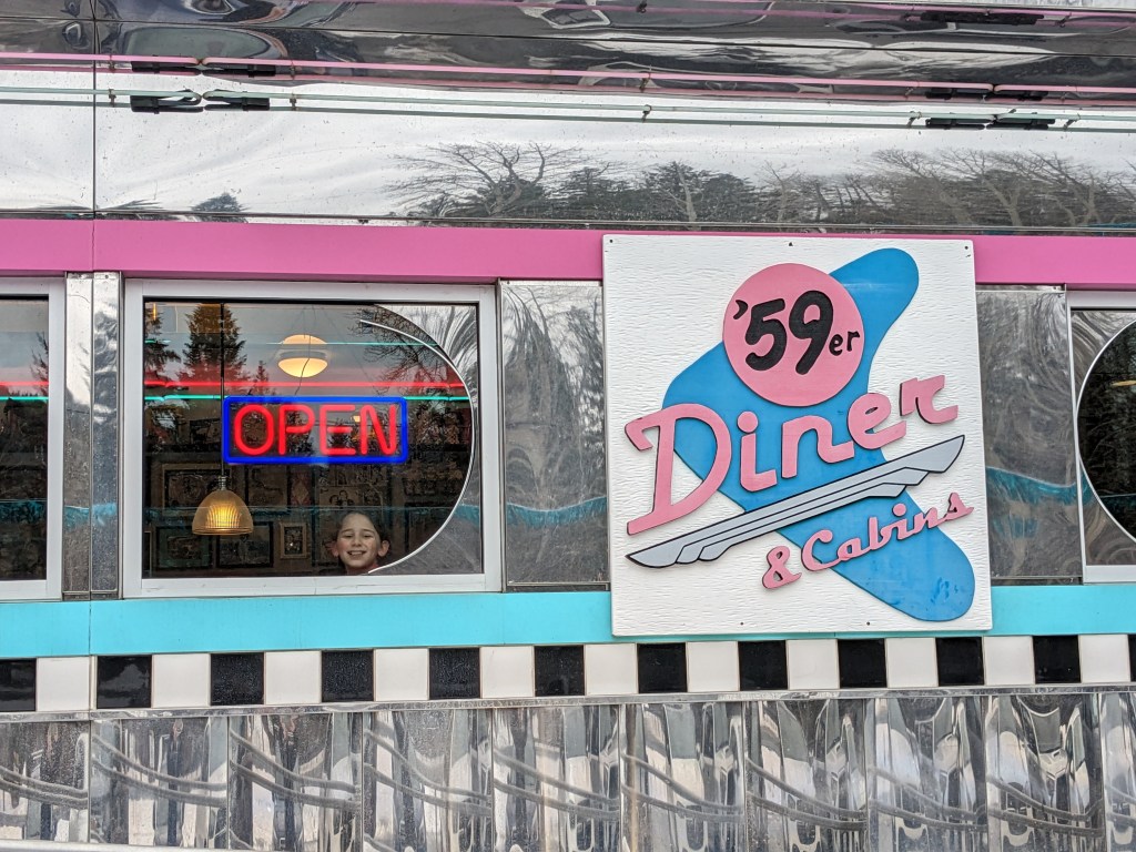 The 59er Diner has been at Coles Corner for a long time. It was built as a tavern in 1945, but became a diner in 1994. I drove out to it a couple of times in high school as a post-hike destination, and I used to pass by it on my way to Spokane when I had work in the area. It burned down in 2016, but was rebuilt in 2018 with an even more on-brand exterior. My family was snowshoeing by Lake Wenatchee, and the diner was an obvious stop for us before heading back home at the end of the day.
