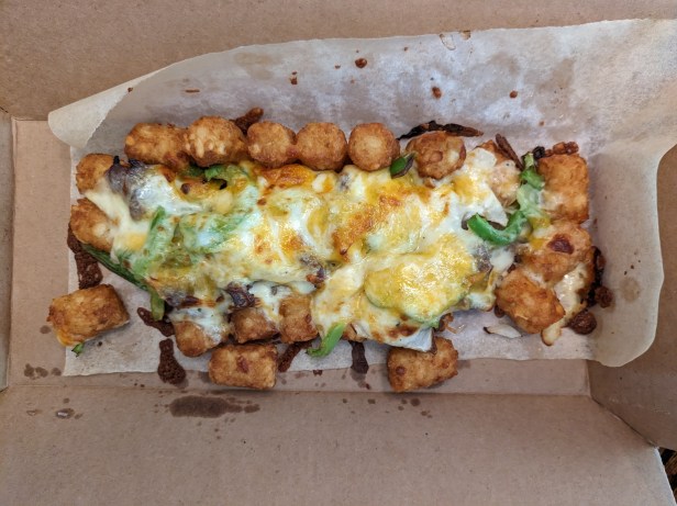 The loaded tots were better than I expected. If you’re going to order them, order the Cheddar Bacon, or gamble with the Melty 3-Cheese (I didn’t try it). Definitely skip the Philly Cheese Steak.