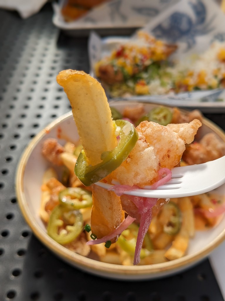 To be clear, I still ordered the fish tacos. They’re tremendous, and it seemed almost criminal to leave without them. The Lobster Fries caught my eye because 1) they’re a French Fry dish, and 2) I’ve never seen fries covered in fried lobster before. It reminds me of one of my first blog posts where I tried Jerk Fish Poutine at Red Fish Blue Fish in Victoria, British Columbia. This was a bit different because the lobster was chunked into nuggets and fried.