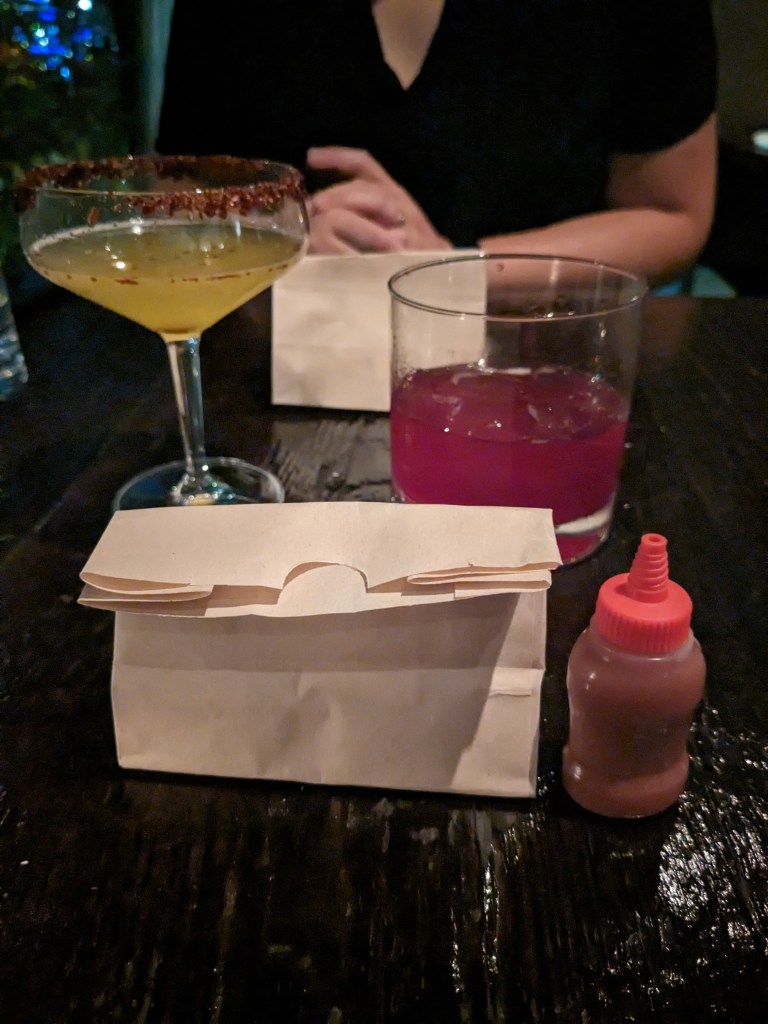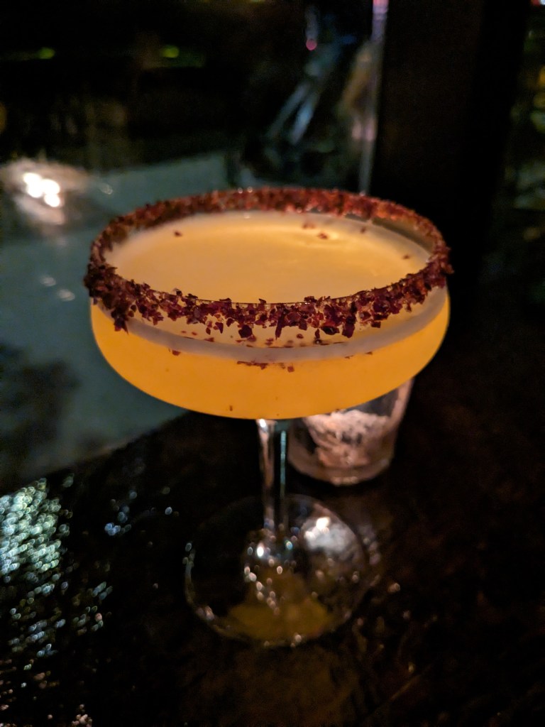 Earning a spot on the blog, Dirt Candy put a lot of thought into its zero alcohol drink offering. We ordered the Desert Sunrise (yellow pepper, aloe vera, lime, guajillo chile rim) and La Barbabietola (beet juice, ghia bitter aperitif, yuzu, soda). The Desert Sunrise approximated a margarita, and La Barbabietola was its own thing, but maybe a Negroni is relatively familiar? I really enjoyed them both but was surprised by how much I liked the Desert Sunrise. I’ve had aloe vera drinks in the past and they were too bitter and weird. This was smooth and layered with the yellow pepper providing some brightness and the lime/chile sparking a bite. Easy to sip, and it paired well with everything. La Barbabietola was such a pretty color and the little bit of carbonation gave the beet juice life. I love yuzu, and it complimented the other earthy/bitter flavors perfectly. These were both solid choices and I don’t think I have a favorite.