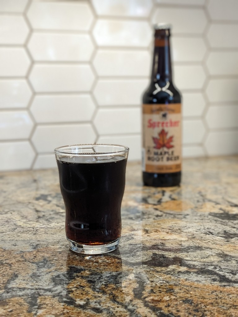 I love Sprecher Root Beer. It’s one of my favorite root beers out there, and creating a variant with maple syrup replacing some of the cane sugar and honey in the original is inspired. The original root beer has a fair amount of vanilla creaminess in the body, but this maple variety enhances the wintergreen and other sharper root/bark flavors. You still get a sweet caramel roundness, but the maple flavor makes itself known as a welcome compliment. Still a root beer, definitely not a maple breakfast sausage. They showed a bit of restraint. It smells spicy (maybe even a bit medicinal) which is probably why some find root beer to be an acquired taste. The dark color, elegant label, and intricate layers of flavor make this a sophisticated soda.