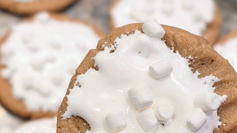 - Place a dollop of marshmallow flow in the center of each cookie. It will spread a bit.