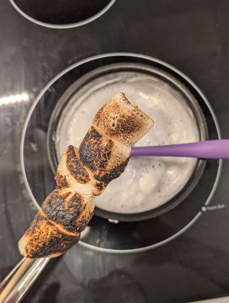 - Reduce heat to medium, add marshmallows and stir constantly until dissolved. For bonus points you can toast your marshmallows to get that roasted marshmallow flavor. This was my preference. Use a pan/pot with tall enough sides that the marshmallows have room to rise as they dissolve. They might not fully dissolve, but you can quit whenever you think enough has incorporated into the syrup.