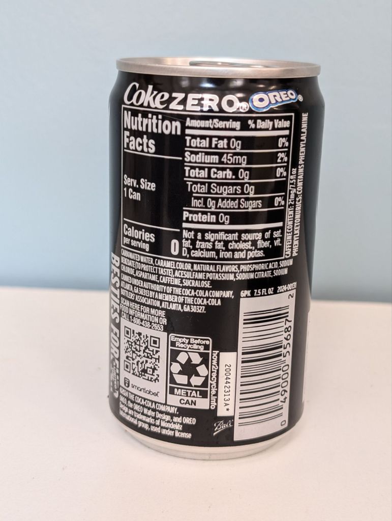What is the essence of an Oreo? When you boil it down (and Coke may have done exactly that), it’s a very simple treat. There’s flour, cocoa, sugar, and shortening (with a mix of other stabilizers, preservatives, and unnamed flavors). The idea of combining that flavor family with a sharp bitter Coca-Cola isn’t obvious, but the teams at Oreo and Coca-Cola made it happen in their “Besties” limited editions. I purchased a six pack of the Coca-Cola Oreo Zero Sugar in the small cans at my local Target and dug into the creation (I also acquired the OREO Coca-Cola Sandwich Cookies and did that review here).