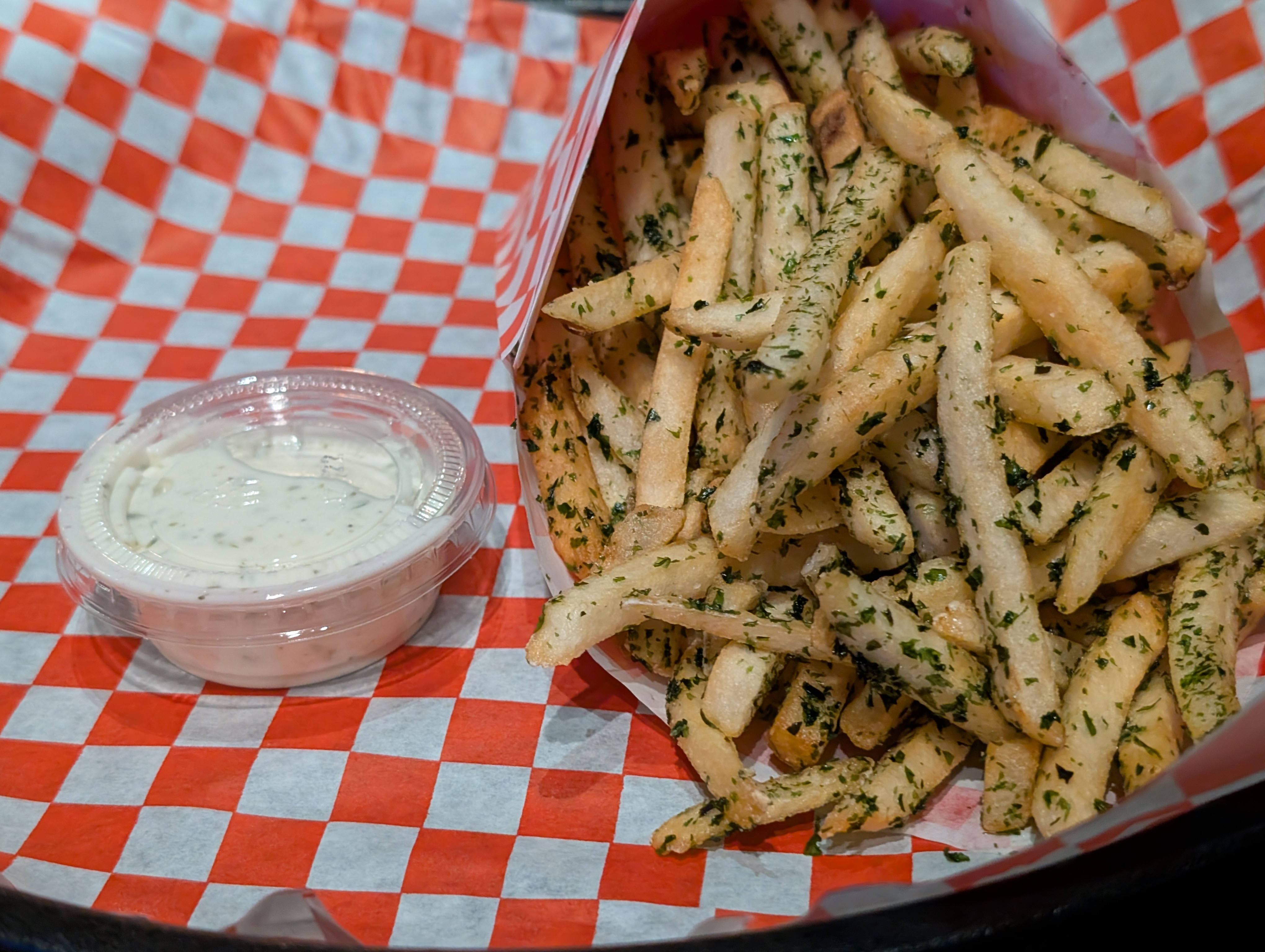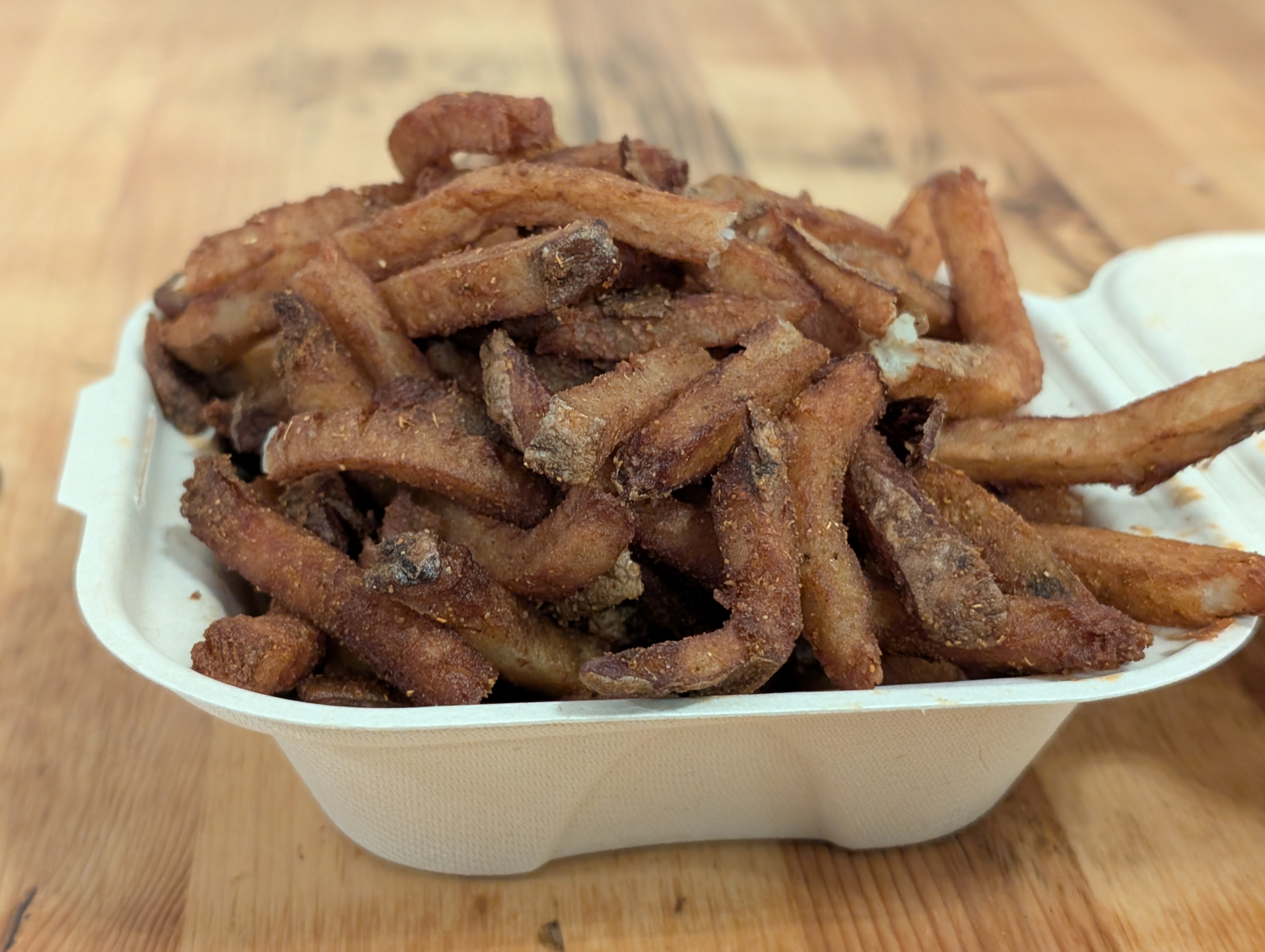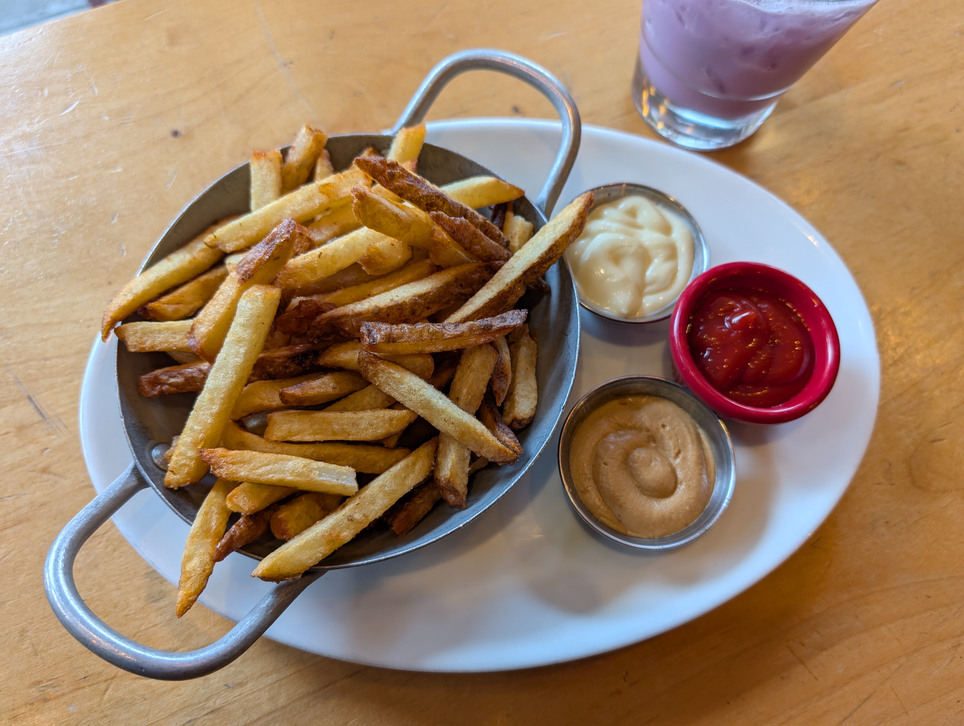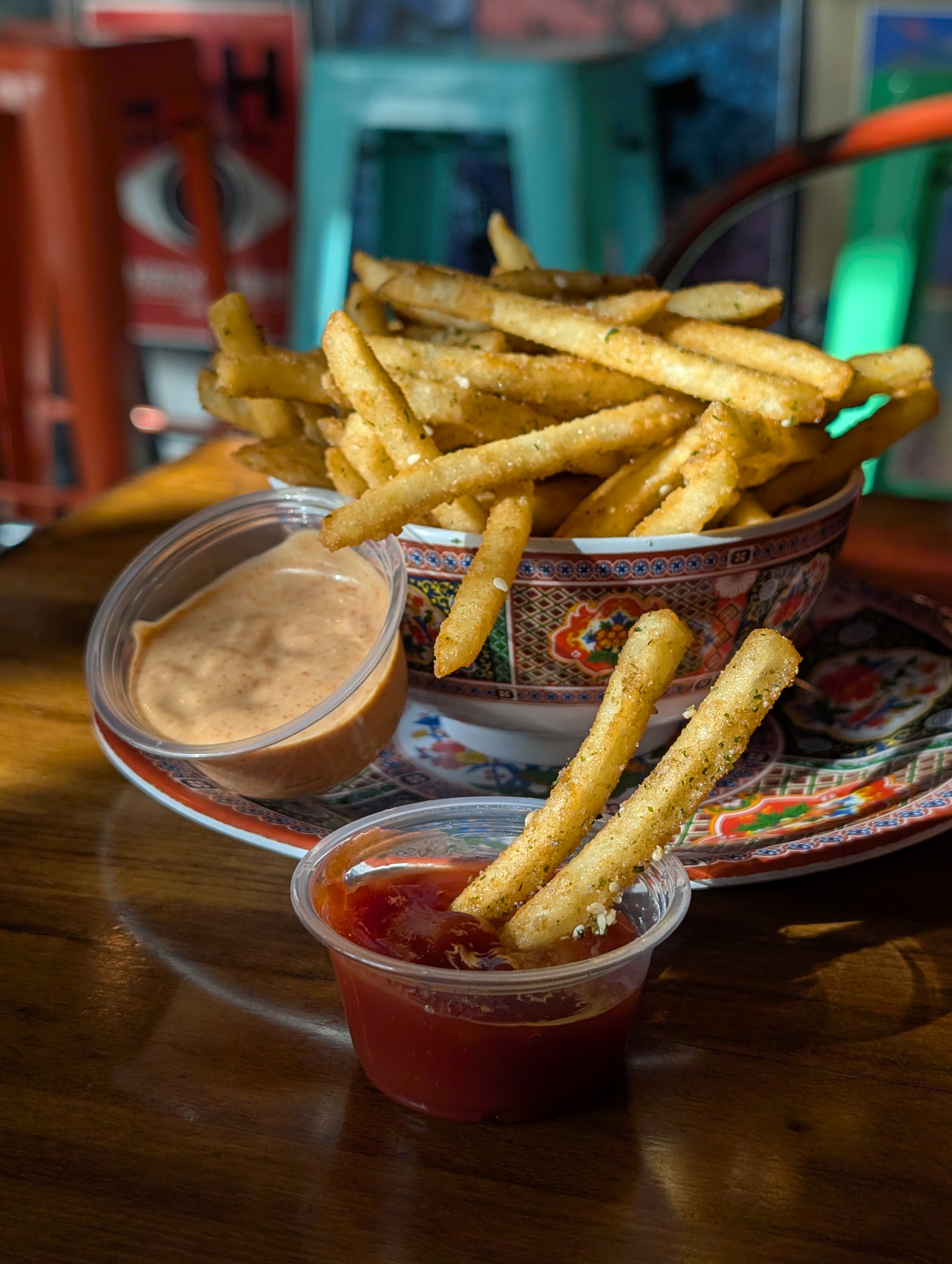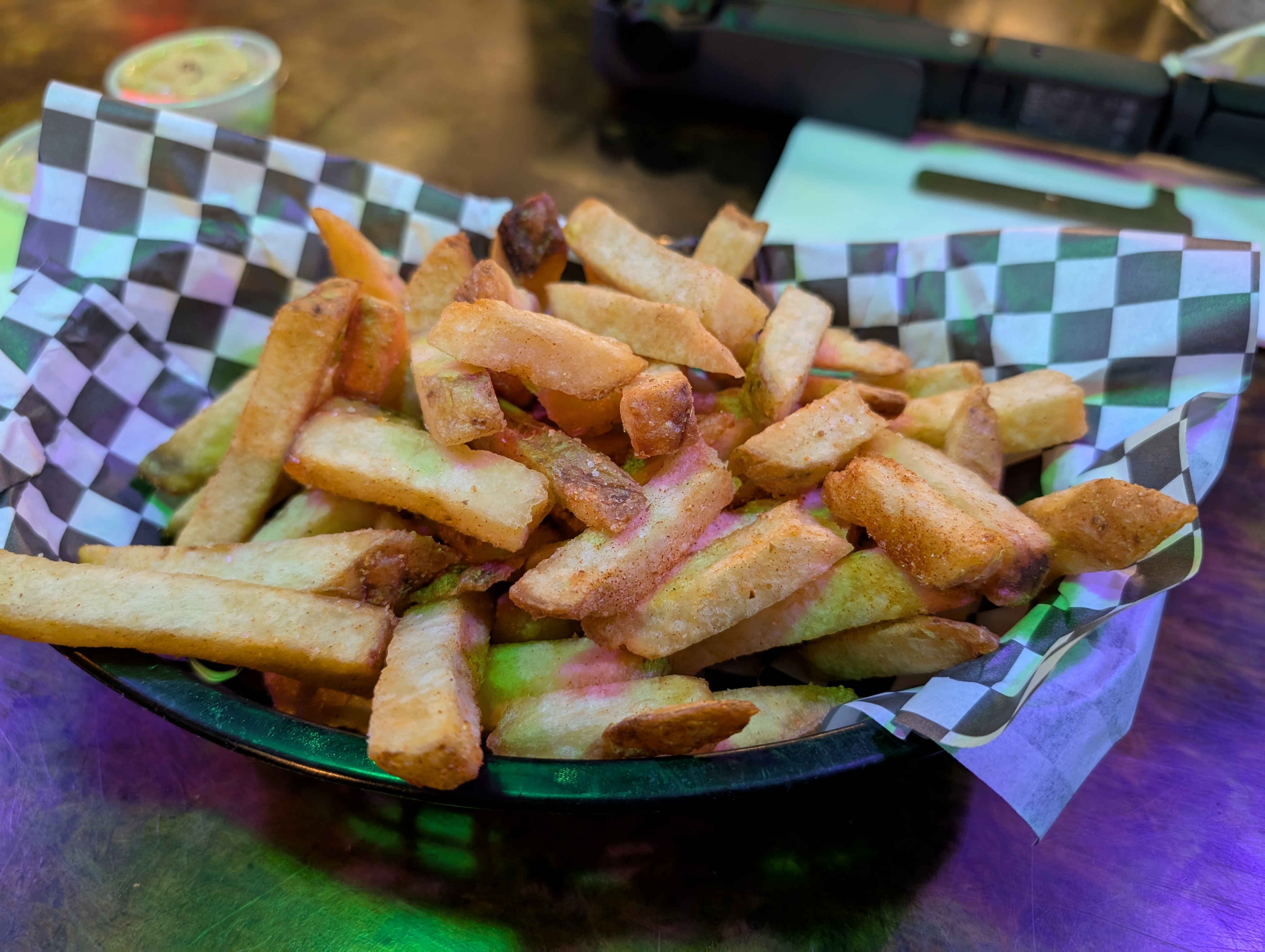 HoneyHole was one of the Reddit recommendations I received. It had been several years since my last visit, and I had no memory of their fries. This turned into one of the biggest surprises of the challenge, because HoneyHole pulled off what I would describe as a nearly perfect technical fry. Meaning that they had prepared it almost exactly how I prefer my fries (your tastes may vary). They’re 10mm thick, obviously double or triple fried, and they nailed the texture so that there’s a distinct crust and a very fluffy interior. Each of these fries could be snapped in half with no flop, and they kept their texture for the duration of my visit. I also appreciated the seasoning of the fries with some sort of flakey/coarse salt. It added a slight crunch and was well distributed. I requested a jalapeño aioli for dipping, and that little bit of hit helped me eat more of these than I thought possible. As good as they were, my body was starting to reject them. In hindsight, I should have ordered a lemonade or something acidic to help my poor tongue.