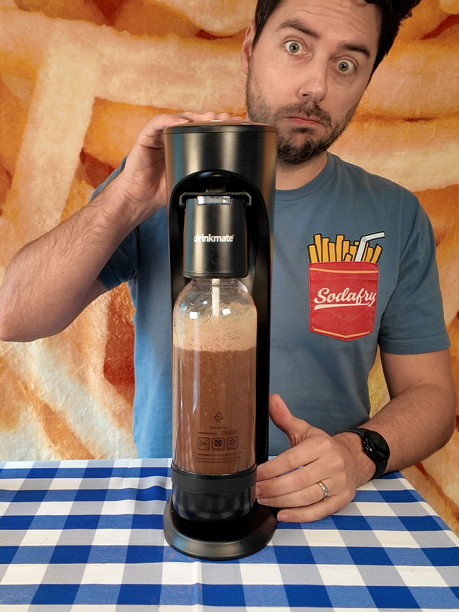 The next day I strained out as many of the solids as I could and poured the liquid into a Drinkmate carbonation bottle. Drinkmate’s system lets you carbonate whatever beverages you want, and I was confident it would do a great job with this mixture. After a couple pumps of carbonation, it was ready to serve.